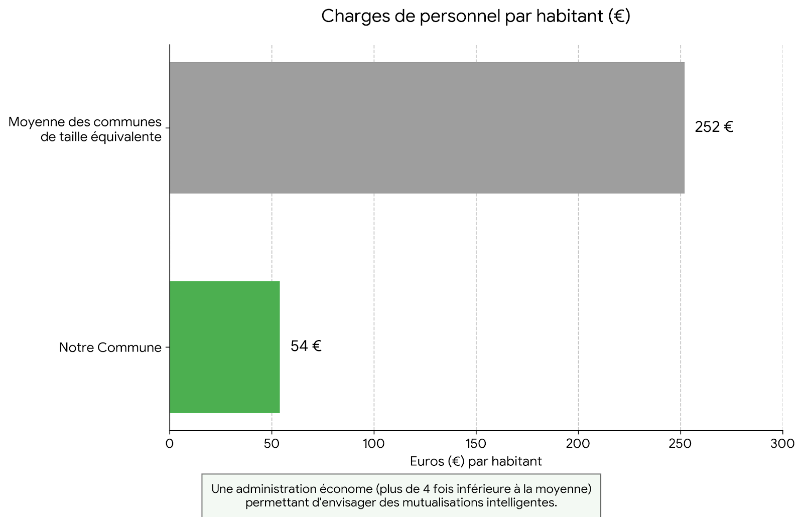 Nos charges de personnel sont extrêmement basses : 54 € par habitant contre une moyenne de 252 € ailleurs.